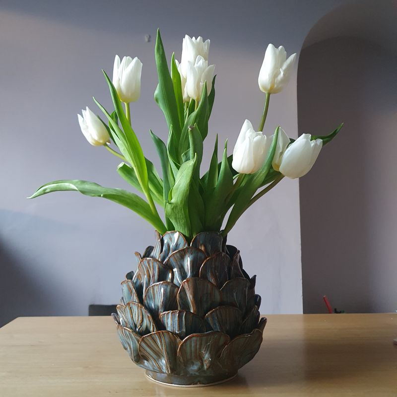 Vanessa creates one-off thrown and hand-built stoneware ceramics, drawing inspiration from natural textures found in her surroundings in the Forest of Dean and walks in The Black Mountains. She produces uniquely shaped contemporary pots, enhanced by light and colour combinations.